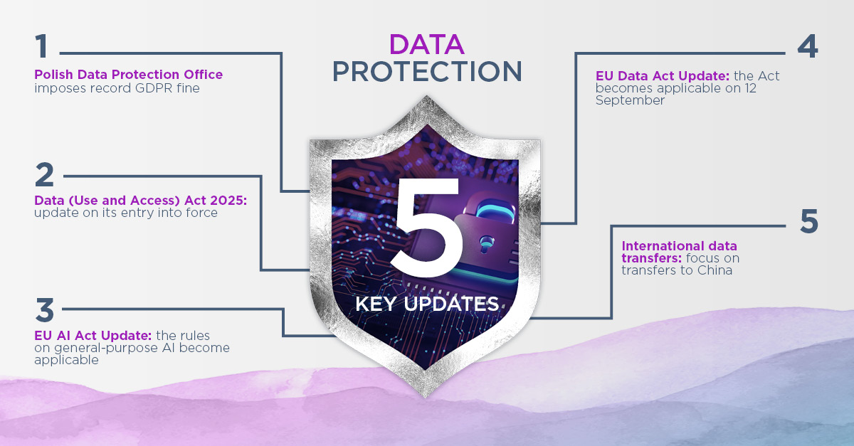 In the September 2025 issue of Data Diaries, guest editor Szymon Sieniewicz highlights the top stories in data protection law. These include a record GDPR fine by the Polish data protection authority, the UK Data (Use and Access) Act 2025 plus updates on the EU AI Act, the EU Data Act and international transfers, focusing on transfers to China.